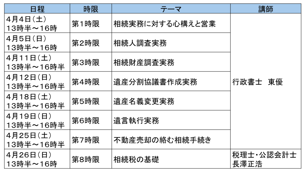 行政書士のための相続実務研修講座 オンラインライブ講座